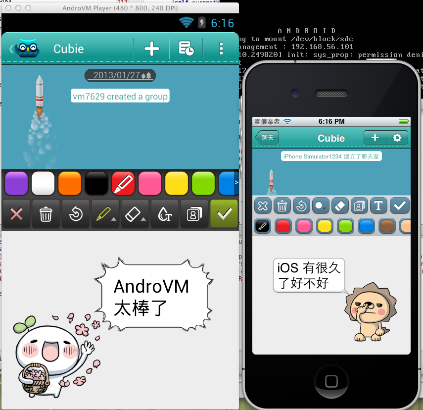 iOS 的開發一直都有 iOS Simulator 可用,速度快功能也全,讓開發的步調變快許多。Android 也有一個 Android Emulator,功能更多,但是開啟慢,執行更慢到爆,所以一直沒什麼人在用,大家都是拿實機來開發。後來 Android Emulator 出了 Intel x86 版 (現在出到 4.1),這玩意我實際裝過後發現的確比原有的快很多,但是裡面沒有 Google Api,我們公司的 App 跑不起來 (Cubie Messenger 有用到 Google Map)。所以 x86 emulator 跟我們無緣了。